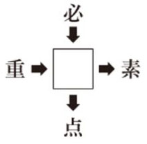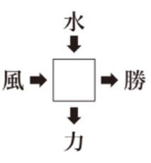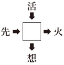真ん中の空白枠に共通する「漢字」をリストから選び、使われずに残った「漢字」を用いてできる言葉は何でしょうか?(→の方向に注意して漢字を選んでね)