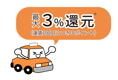 タクシー乗車料金に対してポイントが貯まるサービスです。
